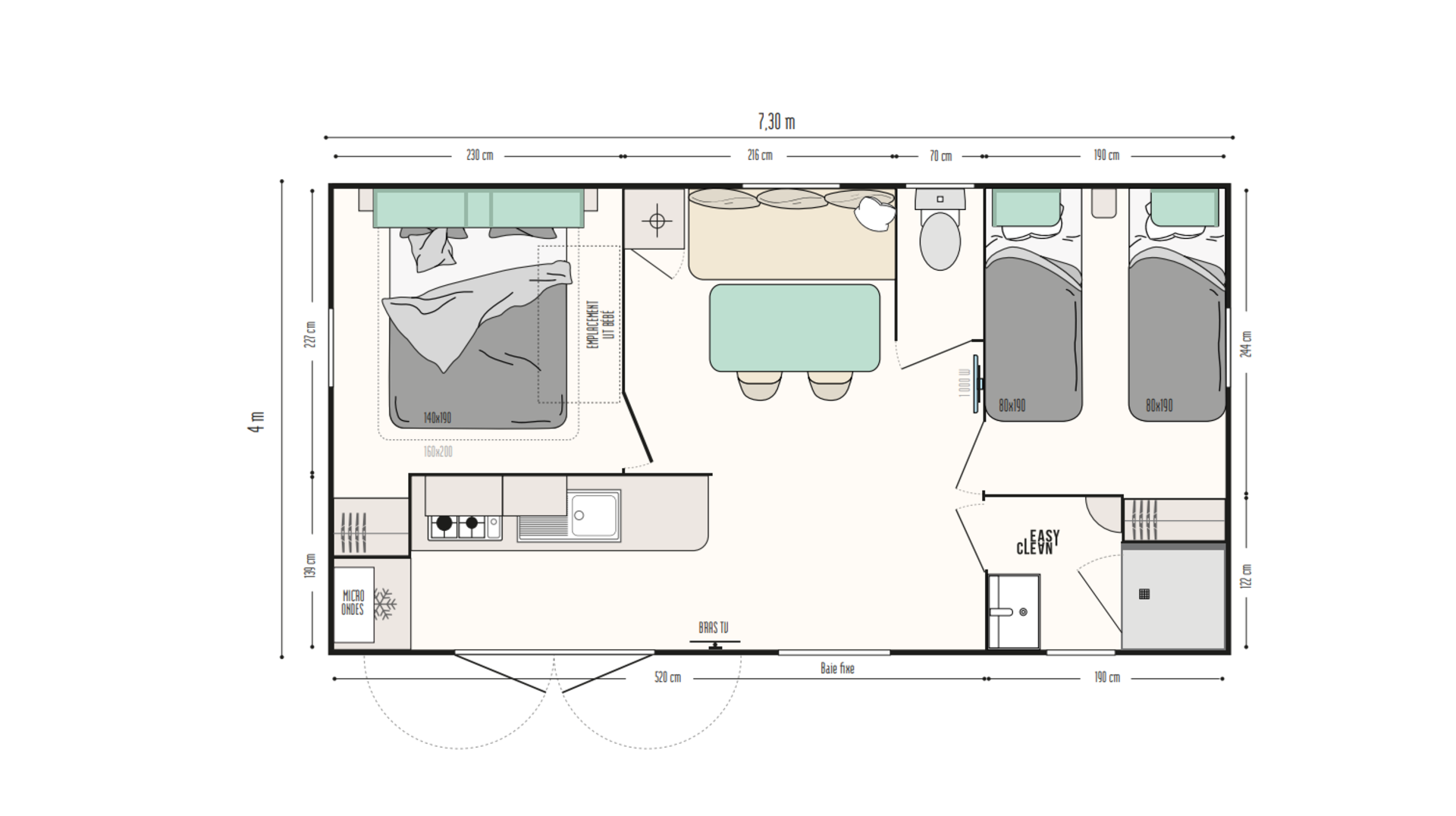 Stacaravan SUPER MERCURE RIVIERA - 2 slaapkamers | IRM voor de zakelijke markt